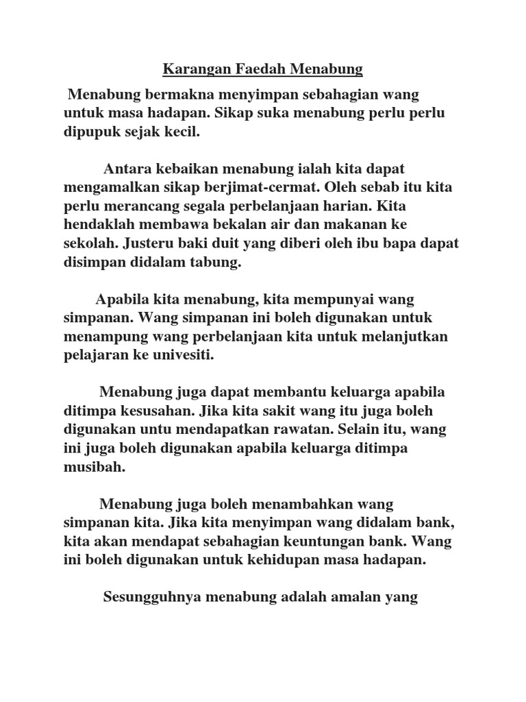 Contoh Karangan Faedah Menabung Pdf Document