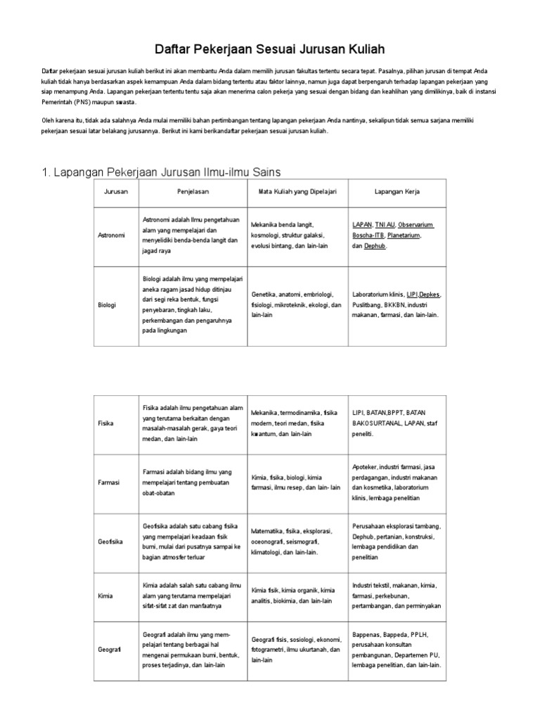 Daftar Pekerjaan Sesuai Jurusan Kuliah